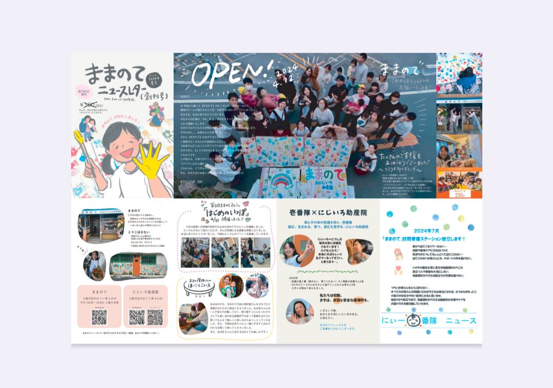 ニュースレター、にじいろ助産院ホームページ内、ままのてのページに応援企業様名を掲載いたします